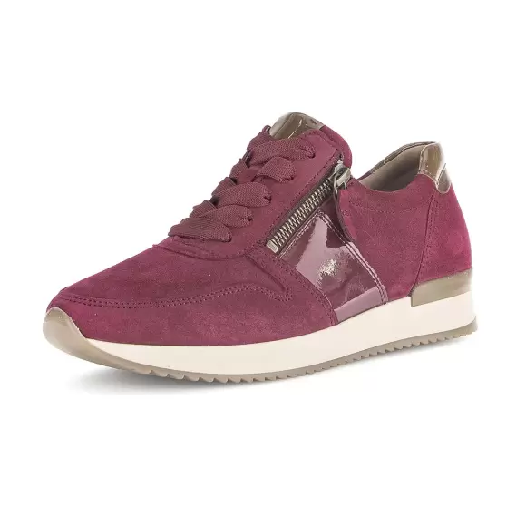 Art. No. 53. 420. 15Gabor Samtchev. Full Lack 53. 420. 15, som er et par elegante sneakers til damer fra mærket Gabor. Disse sneakers er fremstillet i en smuk vinrød farve med detaljer i velour og blank lak, der tilføjer et luksuriøst touch. Designet ink