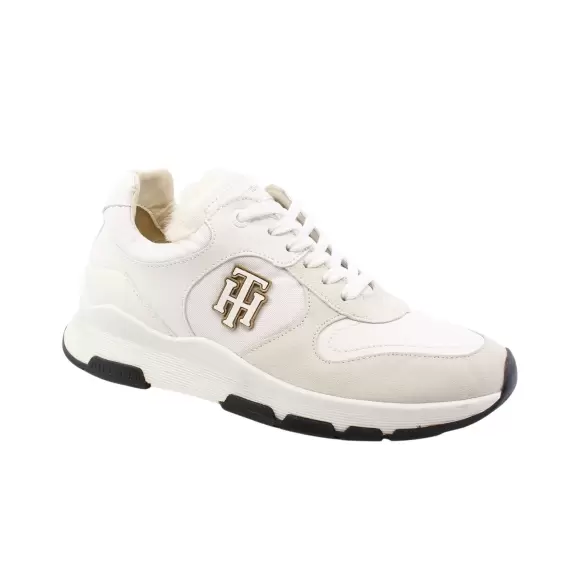 Art. nr. FW0FW06783Smart lys sneakers fra Tommy Hilfiger lavet i en kombination af imiteret skind og skind, den reguleres med snørebånd og har et flot TH logo på ydersiden. Indvendigt er der en smule varmt foer og den ckunky sål er lavet i gummi.