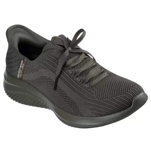 Art. No. 150447 OLVSkechers Women ULTRA FLEX 3. 0 150447 OLV er smarte og lette sneakers til damer, designet til både komfort og stil. Overdelen er lavet i en fleksibel og åndbar strik i en flot olivengrøn farve, som former sig efter foden for en perfekt